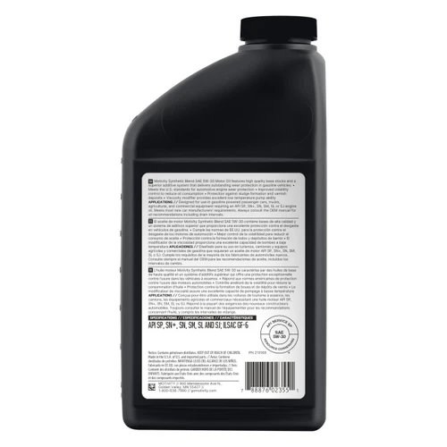 Motivity Syn Blend Motor Oil is formulated with high-quality base stocks and a superior additive system. This formulation delivers reliable wear protection and dependable performance in gasoline-powered vehicles. The fluid is designed to meet U.S. automotive engine wear protection standards.
