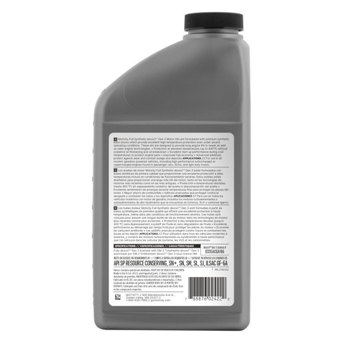 Motivity Full Synthetic dexos1™ Gen 3 Motor Oil is engineered with premium synthetic base stocks and advanced additive technology. This combination delivers exceptional engine protection and performance. This full synthetic motor oil meets the demands of today’s gasoline engines. It offers outstanding stability at high temperatures and reliable protection in tough conditions.